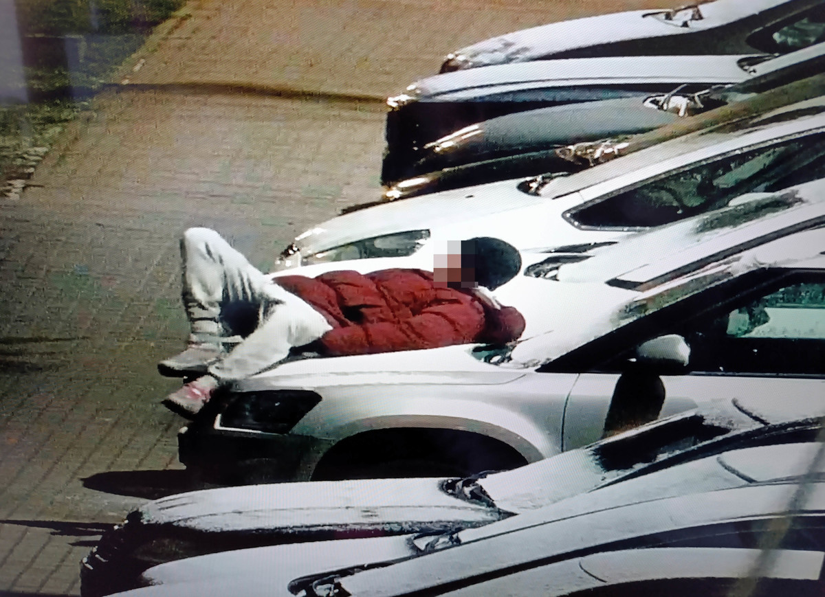 Jeden z nastolatków postanowił, że idealnym miejscem na nocną zabawę będą pokryte śniegiem maski samochodów. Chłopak kładł się na nich, a następnie zsuwał, niszcząc przy tym pojazdy. W rozmowie z funkcjonariuszami najpierw zaprzeczył swojemu zachowaniu, by później stwierdzić, że „to nie jest nic złego i może tak robić”.